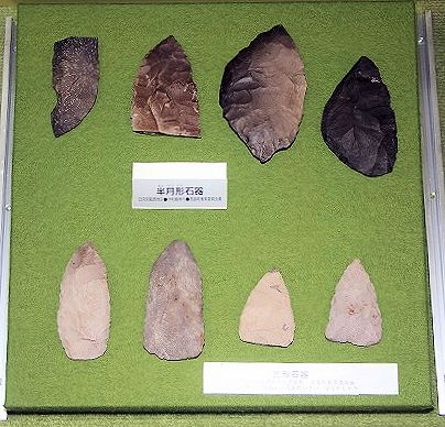 日向洞窟遺跡西地区の尖頭器 日向洞窟遺跡西地区の半月形石器と箆形石器