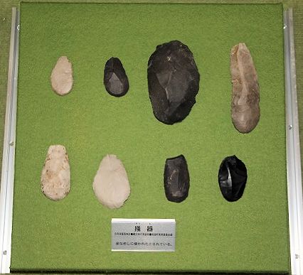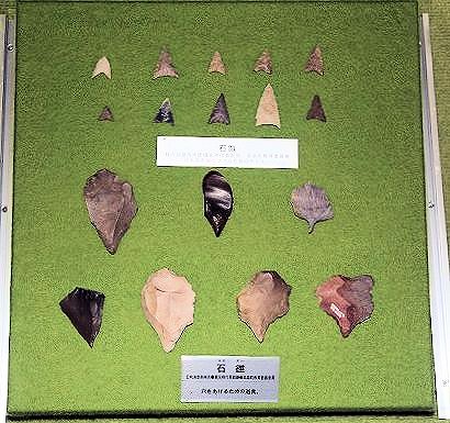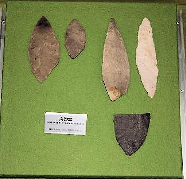 押出遺跡の石鏃、石槍(重文) 押出遺跡の石匙、石錐、篦状石器、磨製石斧(重文)
